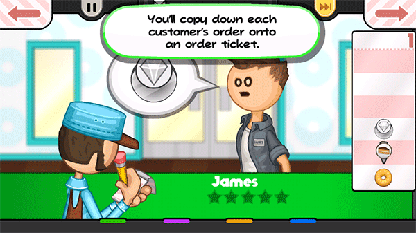 由于乔乔是美食评论家,所以得分很难,堪比其他终结者,只要做到80分以上就可以得到蓝丝带,三天有效期,顾客会给你更多小费,这个贴纸如果做得好话5周后就有了