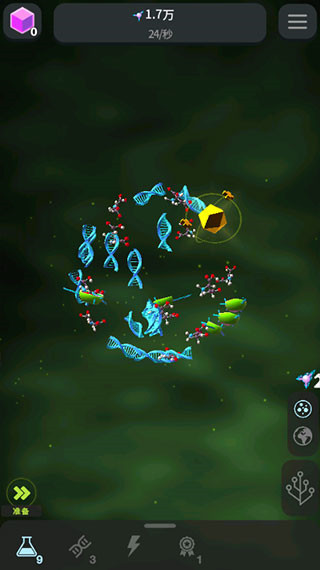 1、简易但具有科幻风格的低模画面,通过放置点击完成生物的进化。2、随着时间的推移,各种地图场景逐步解锁,演化的方向也具有了多样性。