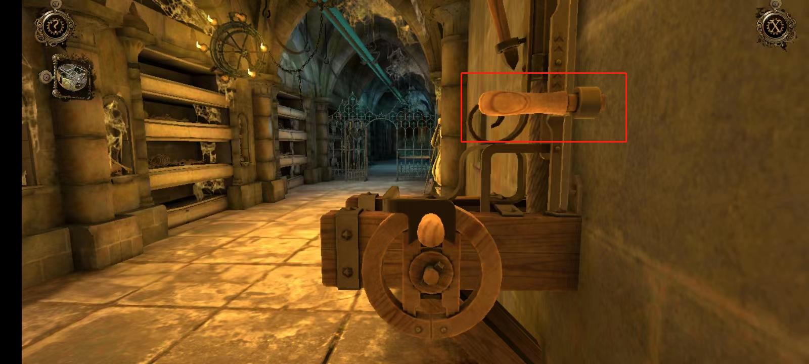 14、向右摇动机关上的摇柄直到机关卡死,机关卡死后会出现把手,向上拖动它,再重复一次;
