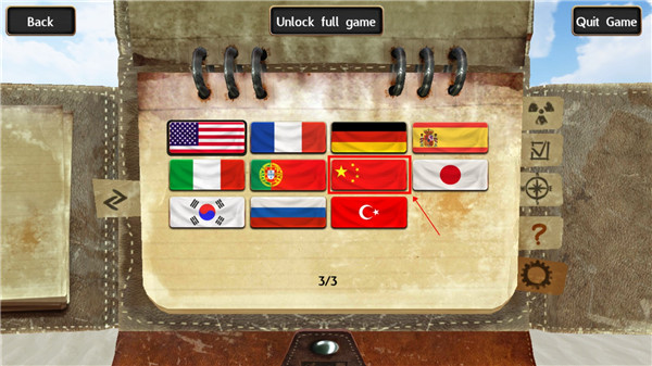 PS:中文设置方法:过完教程后,找到右上角“公文包”按钮并点击>找到“齿轮”按钮并点击>在“3/1”处滑动即可翻页,翻页至第“3/3”页>选择中国国旗,即可更改语言为中文。