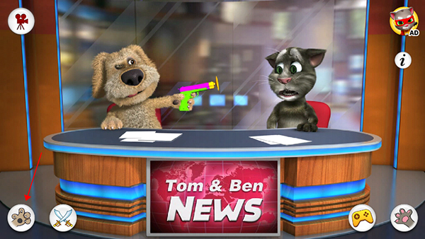 2、轻戳或轻扫屏幕:你可以控制汤姆或本快速旋转并从椅子上跌落。点按狗爪按钮:本用拳击手套枪或玩具飞镖枪惹恼汤姆。