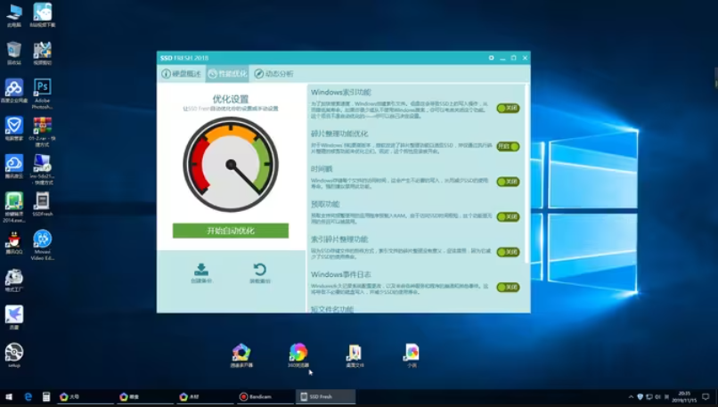 SSD Fresh软件的工作原理是通过打开或者关闭操作系统一些与SSD性能与寿命相关的功能,例如关闭磁盘索引、关闭睡眠、关闭虚拟内存等来实现优化。