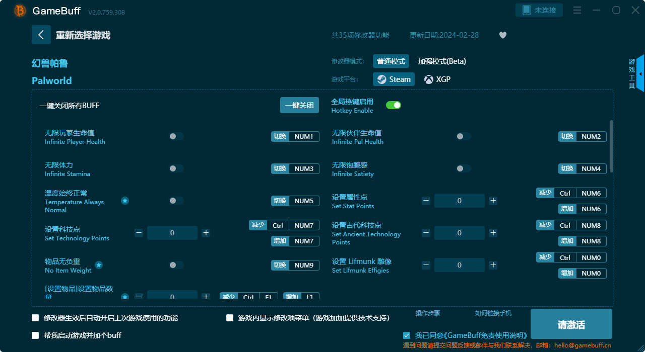 幻兽帕鲁35项修改器使用说明