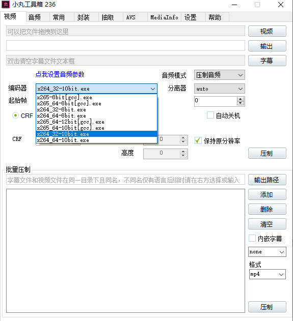 1、视频编辑,批量压制,支持对视频参数、音频参数进行调整;