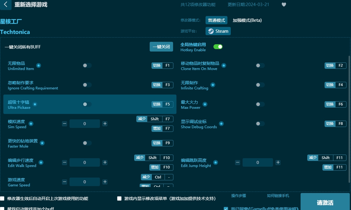 星河工厂十二项修改器软件功能