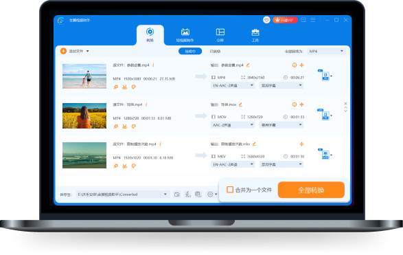 选择完毕后,点击全部转换,系统将自动开始转换视频文件,等待转换完成即可。