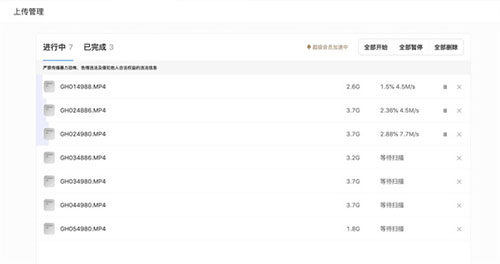 3、可管理上传任务,并支持断点续传,很好的避免了因为断电、电脑宕机而导致的资源上传失败的的问题。