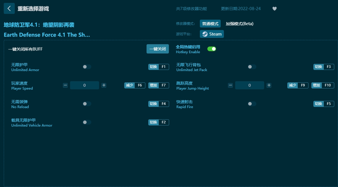 地球防卫军4.1:绝望阴影再袭七项修改器使用说明: