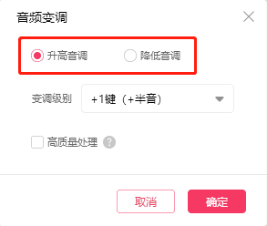 第四步、以升高音调为例,点击下拉按钮选择变调级别。