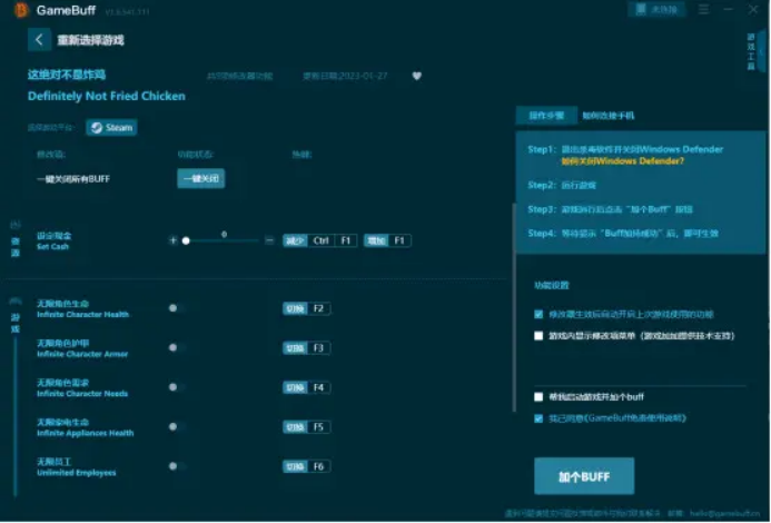 这绝对不是炸鸡修改器是一款模拟经营类游戏,玩家需要以各种不同的方式,去扩展并经营自己的炸鸡店,来获得更多的收益,而使用这绝对不是炸鸡修改器,支持的无限员工、无限角色生命、现金设定等逆天功能,可以让玩家轻松经营也不用担心金钱员工不够的问题,感兴趣的玩家朋友们,快来下载使用这绝对不是炸鸡修改器吧!!!