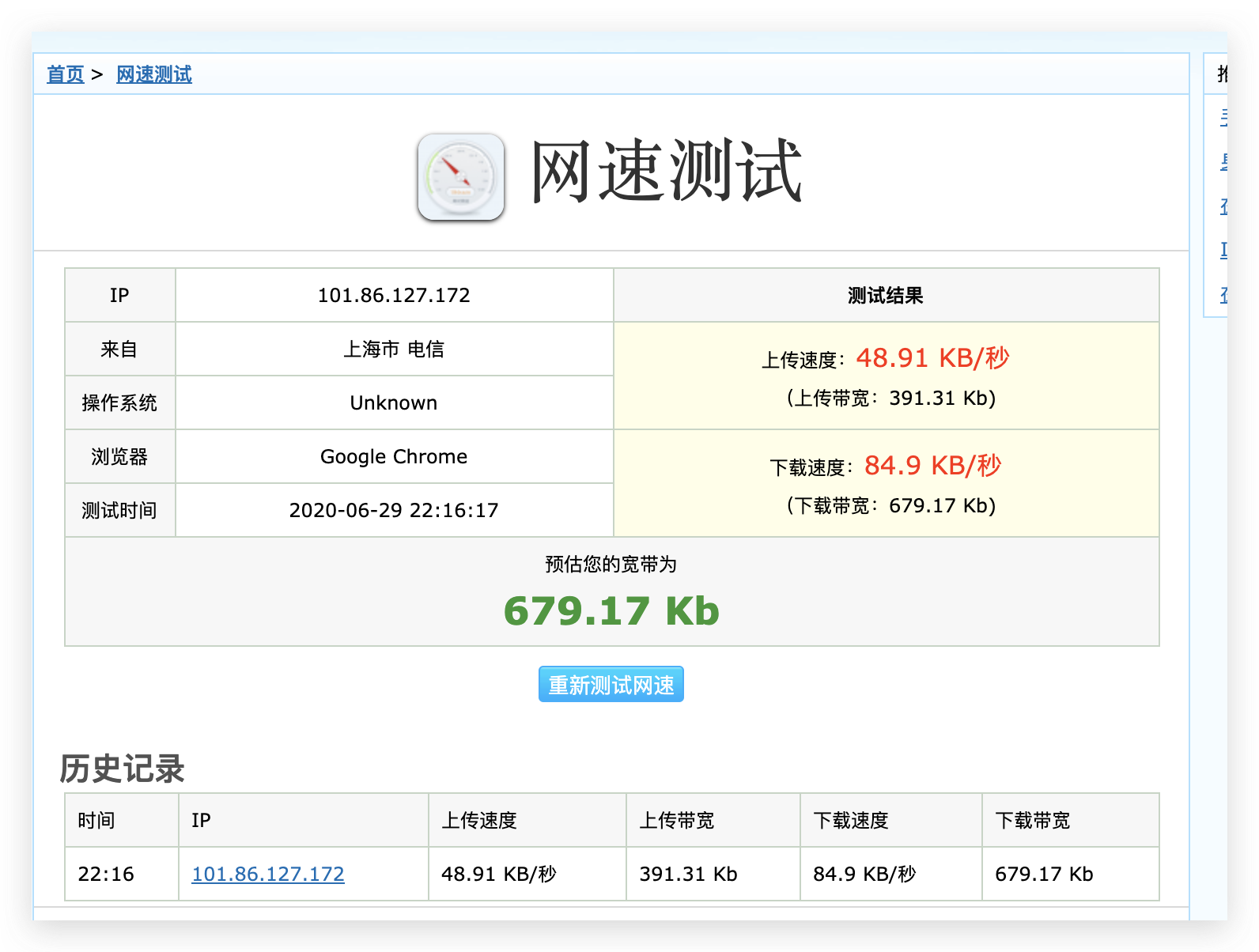 测试您所用有线宽带访问互联网时的即时接入带宽速率。本测速有助于您了解您的当前接入带宽是否符合有线宽带申请速率。