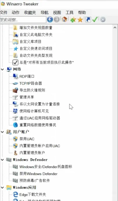5、支持调整Windows Defender、隐私、注册表等设置。