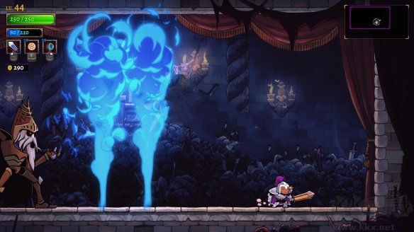 继承人信息依次为职业、武器、特殊技、法术以及特性。职业下方会有血量和魔法值的讯息,比如骑士一般血量较高,法师血量则比较低,但有非常充裕的魔法值。武器影响着继承人的普攻方式。特殊技则能提供一些辅助效果,比如骑士的盾牌格挡可以大大减少受到的攻击伤害;弓箭手的常春藤平台,则可以凭空造出一个平台用来站立。至于法师则会随机分配,比如风墙、火球等等。