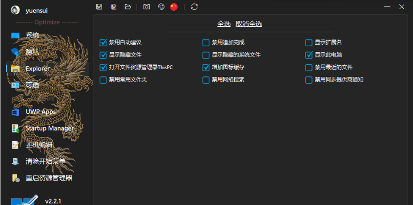 - Windows调整:启用隐藏性能相关的Windows选项。