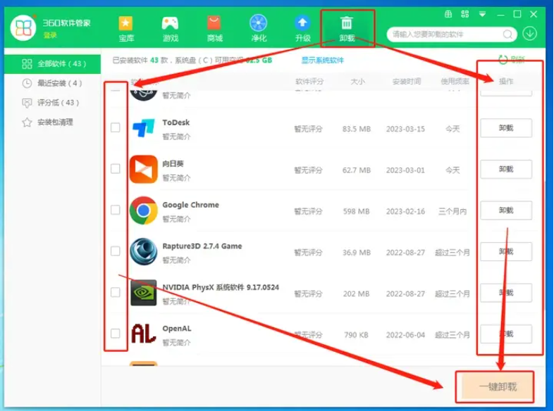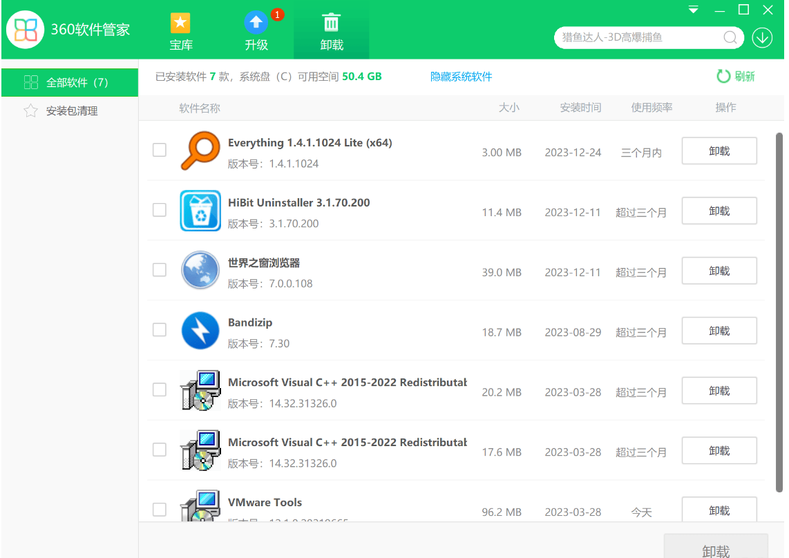 最后是这个【卸载】,可以轻松卸载我们不需要的软件,并且还会清楚软件残留。