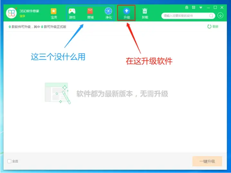 其次是这个【升级】负责的是检测软件并升级