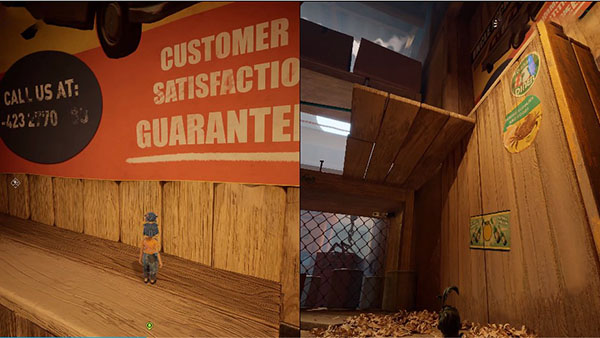 5、还有比如在工具箱章节中,夫妻两人分别使用“锤子”和“钉子”,“钉子”可以创造让锤子可以勾住的着力点,而锤子可以敲下更多的钉子用于使用,两名角色的道具配合可以产生无比奇妙的玩法。