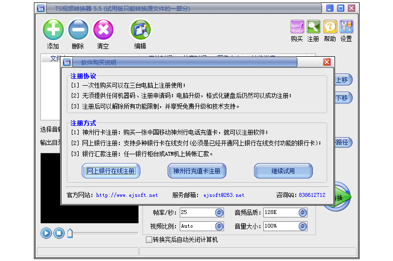 (7) TS视频转换器支持多种参数设置,包括视频尺寸,视频品质,音频品质,声道,采样率等等具体参数;