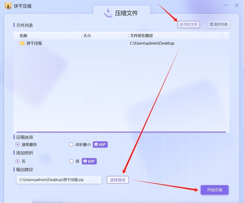 点击【压缩文件】,首先添加要压缩的文件,你可以将文件直接拖拽到操作页面或者点击【添加文件】选择文件所在文件夹完成添加;
