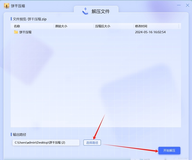选择【输出路径】,如何然后点击【开始解压】。
