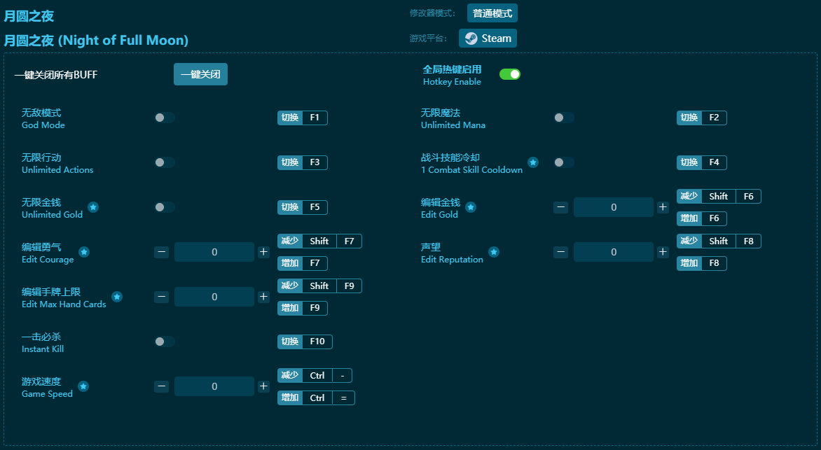 4、游戏运行后点击“加个BUFF”即可,也可以根据需要进行单项修改;