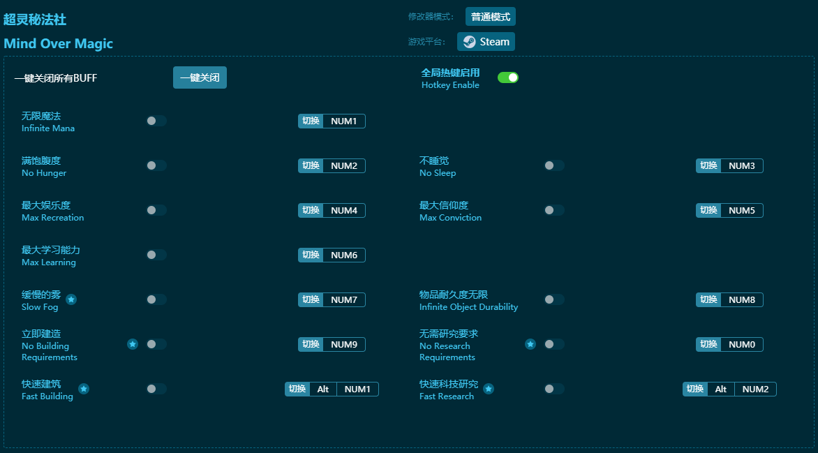 5、等待显示“BUFF加持成功”后,我们就可以在黑山游戏中使用按键来快速激活和关闭对应的修改器功能了