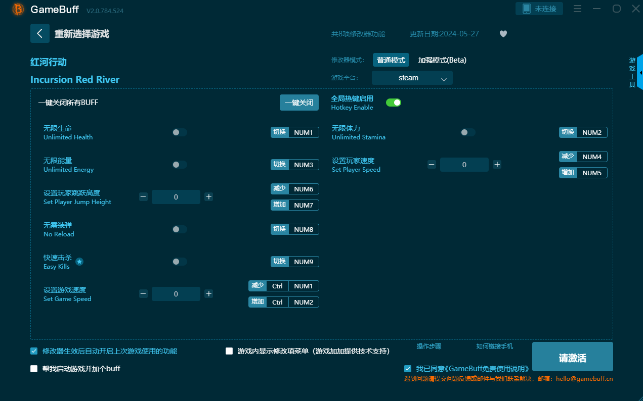 红河行动是一款游戏修改工具,这款修改器的操作方法非常的简单,玩家们可以下载修改器,打开首页搜索游戏名字,在游戏中很多的玩家们可以进行探索,在游戏中很多的玩家们可以使用无限换弹,无限生命值,无限子弹,增加移速,多种修改功能帮助玩家们有更好的游戏体验感,非常的实用,喜欢的玩家们抓紧时间下载安装吧!