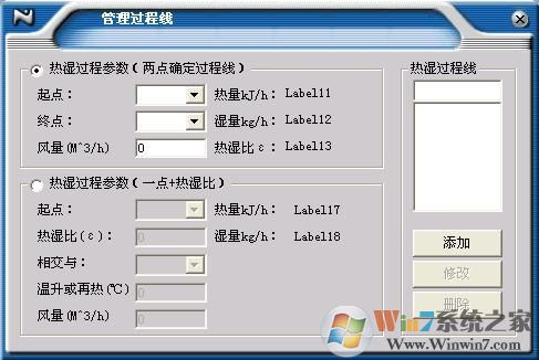 按指定起止点和风量绘制热湿处理过程线,计算相应的热量、湿量和热湿比参数;