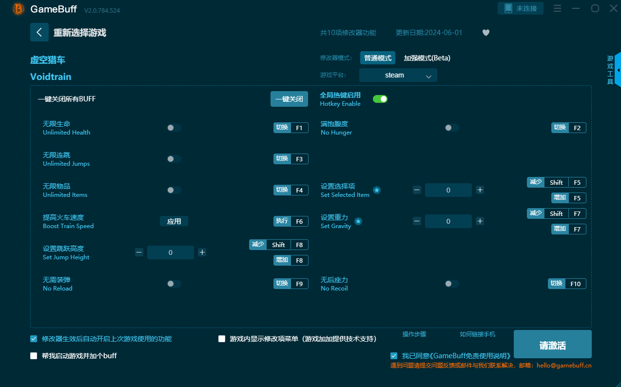 4、先运行“虚空列车”游戏再运行修改器,游戏运行后点击右侧的“加个BUFF”按钮激活修改器。