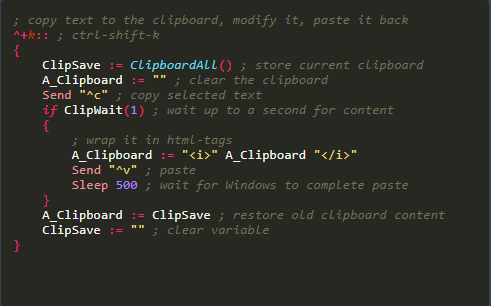 多种条件判断(字符项目、窗口、文件、进程、错误返回值等),条件下采用{}区块以及制表符进行分层级;