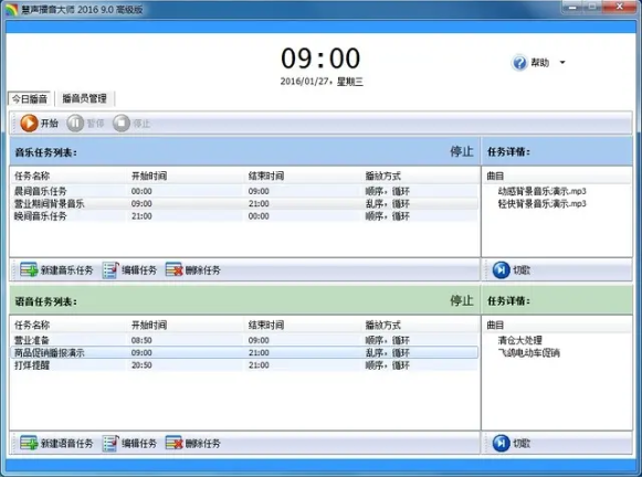6.可分别设置音乐定时播音节目单和语音的定时播音节目单,且音乐和语音自动匹配,令整个商场音乐不断、气氛不歇;