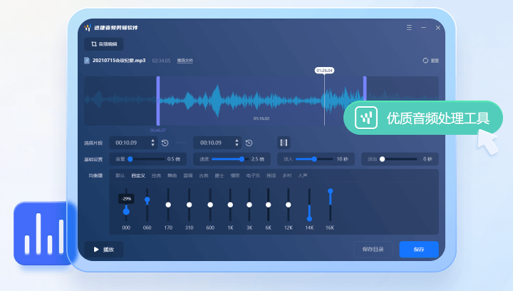 3、音频变速自由调整音频的速度,多种变速模式选择,无需自己设置,且输出的音频文件音质清晰。