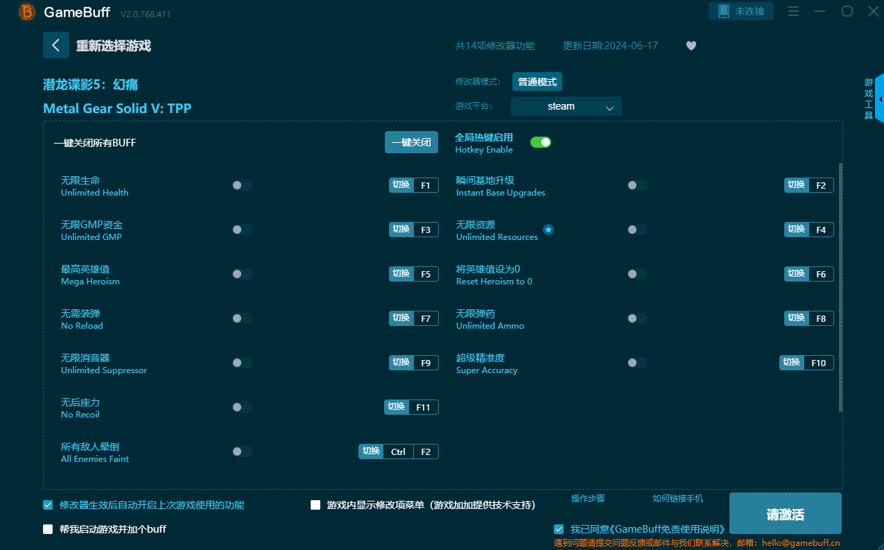 潜龙谍影5:幻痛修改器使用说明