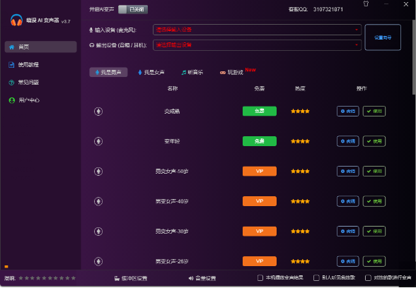2、连接到自己的麦克风就可以在软件添加AI变声类型;