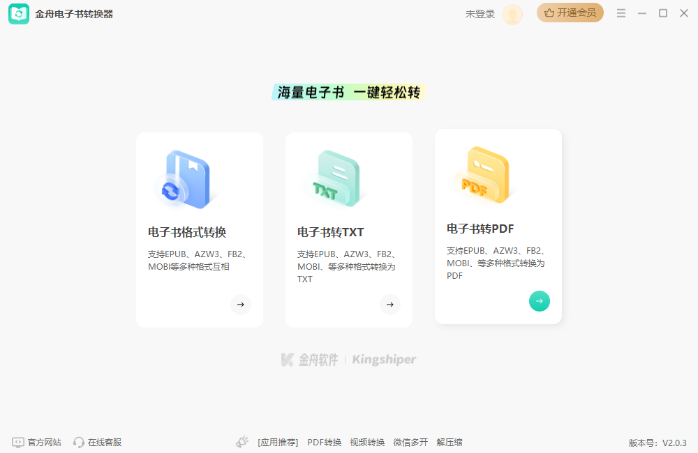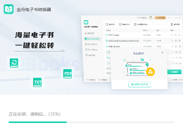 金舟电子书转换器是一个实用的电子书格式转换软件,可以将电子书转换为其他格式的电子书、TXT文本文件、PDF文件,十分全面。兼容多种主流电子书格式,如EPUB、AZW3、FB2、MOBI等,从各个电子书网站上下载的都可以进行转换,为经常阅读电子书的用户提供了便捷的转换工具。
