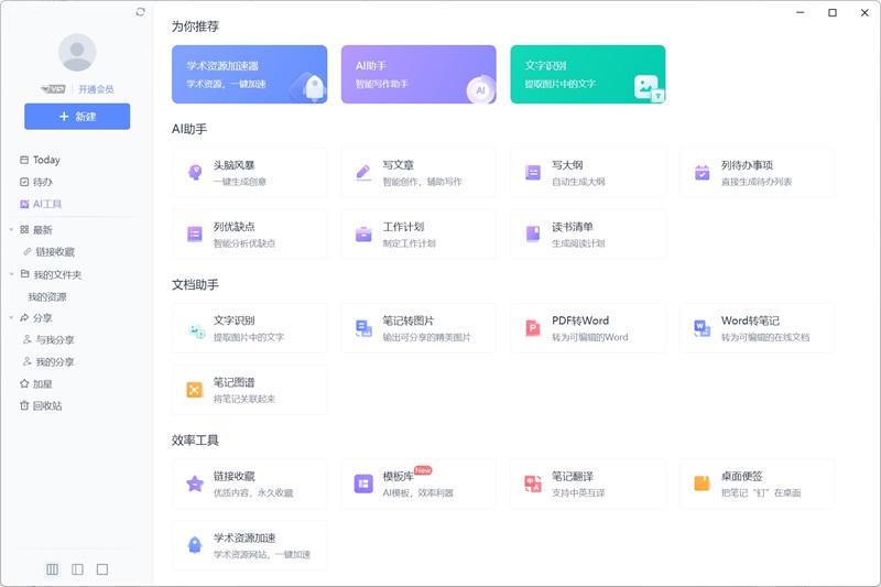 有道云笔记电脑版是一个专业的办公笔记软件,通过这款软件,我们可以方便地创建流程图、脑图、文档、表格、Markdown笔记,满足了各行各业的文档制作需求,无论是学习、工作还是业余爱好,都可以用这款软件来辅助你。支持AI问答功能,快速获取内容并应用到笔记中,轻松高效。