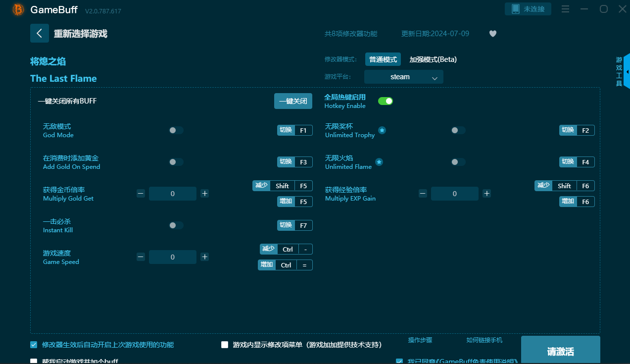 将熄之焰修改器是一款非常实用的游戏辅助工具,游戏的修改器可以选择不同的选项进行游戏,无敌模式、无限奖杯、无限火焰、一击必杀、游戏速度、获得经验等多种经验,这款修改器可以提高游戏的体验感,游戏中也可以修改其他的游戏,让玩家们更加的具有趣味感,让玩家们可以有更好的游戏体验感,喜欢的玩家们抓紧时间下载安装吧!
