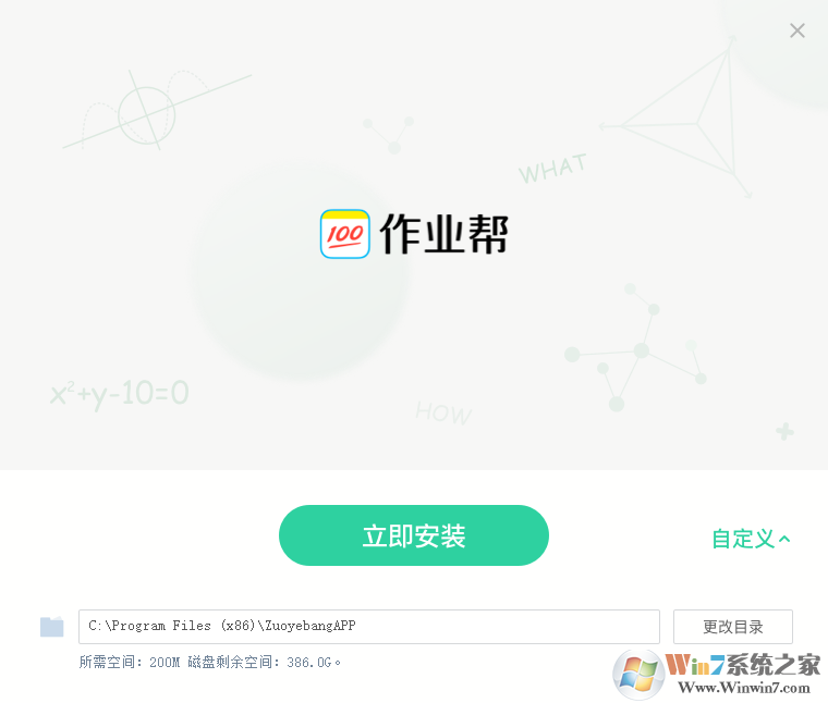 2、点击自定义可以更改安装目录,然后点击立即安装