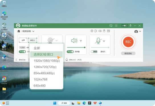 随心选择录制区域,可桌面录制、全局录制、自定义录制