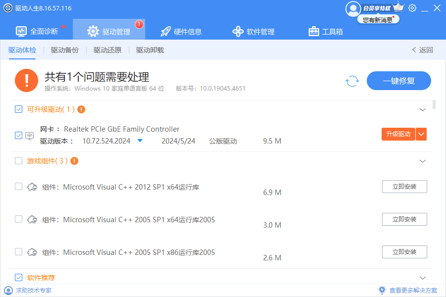 全面性:支持检测和更新各种硬件设备的驱动,涵盖了电脑中的主要硬件组件,如显卡、声卡、网卡、主板等,确保系统的各个部分都能得到优化。