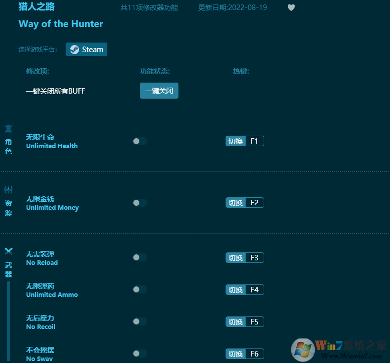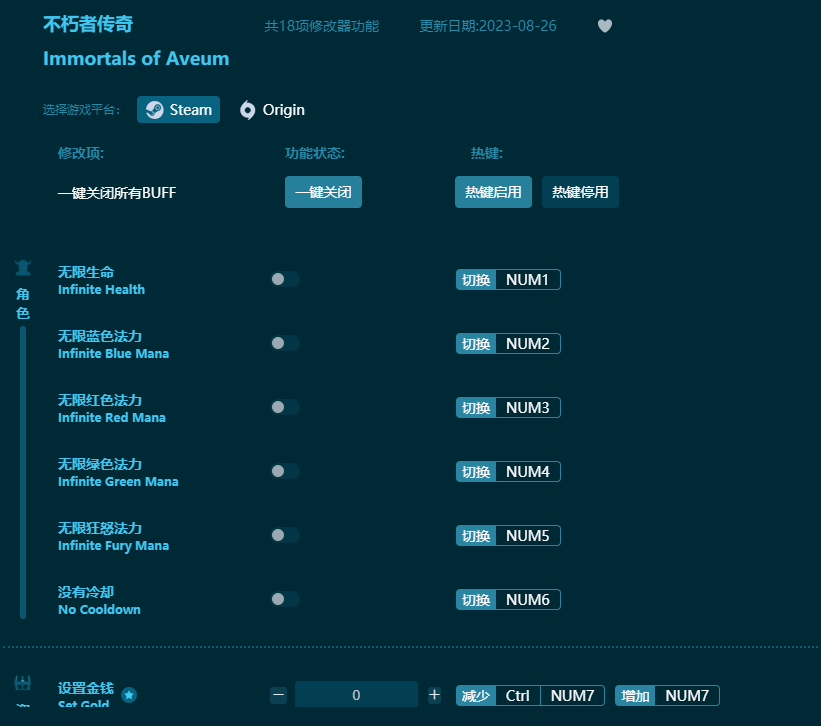 点击简体、繁体、English,可以切换语言 (切换语言后修改器将把该语言设置为默认语言)