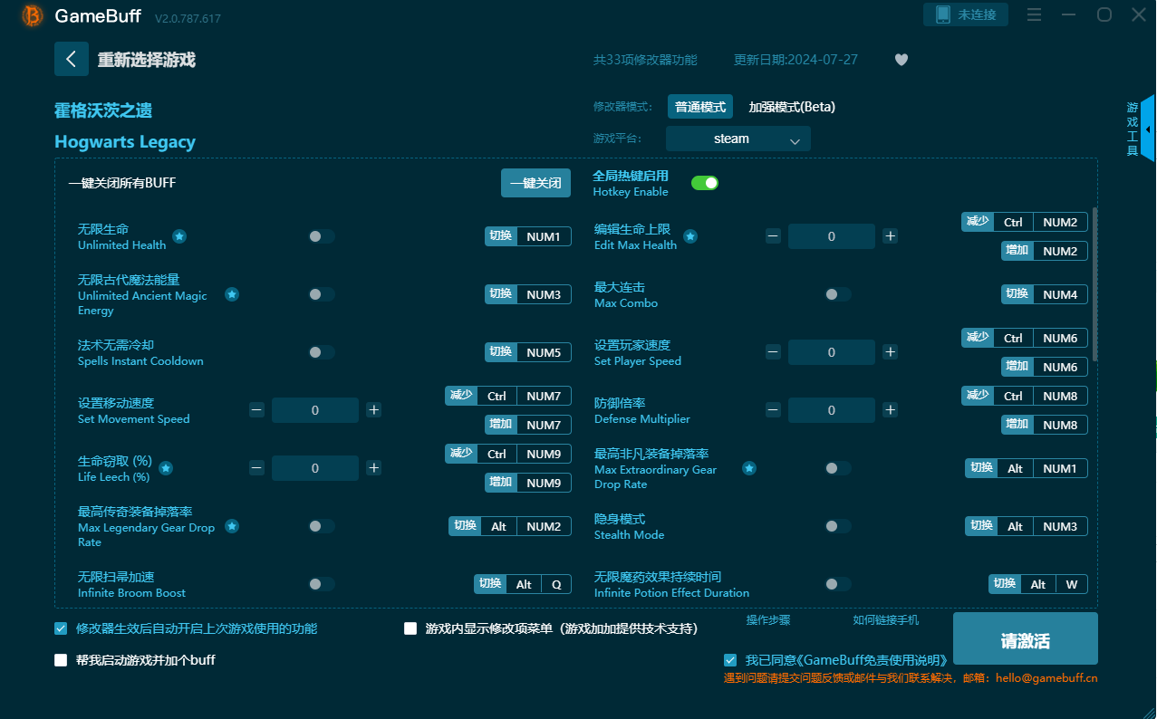 霍格沃茨之遗修改器是一款非常实用的游戏辅助工具,游戏中有丰富的修改器选项,游戏中玩家们可以这个魔法世界中自由的探索,会遇到各种困难敌人需要解决,修改器的选项能够帮助玩家们更好的体验感,无限生命、移动速度,技能无冷却,防御倍率,隐身模式等多种选项,可以获得更快的上手游戏,感兴趣的玩家们抓紧时间下载安装吧!