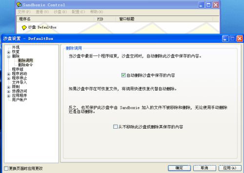 4、配置沙盘退出时自动删除保存的内容,以节省硬盘空间: