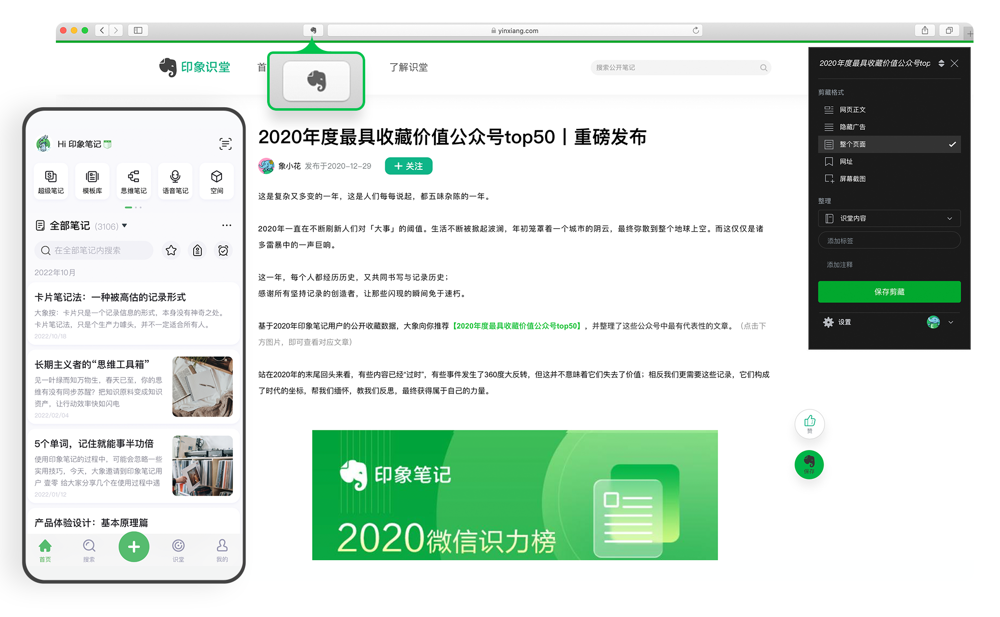 无论是微信文章、微博动态或是网页内容,都能一键保存至印象笔记。