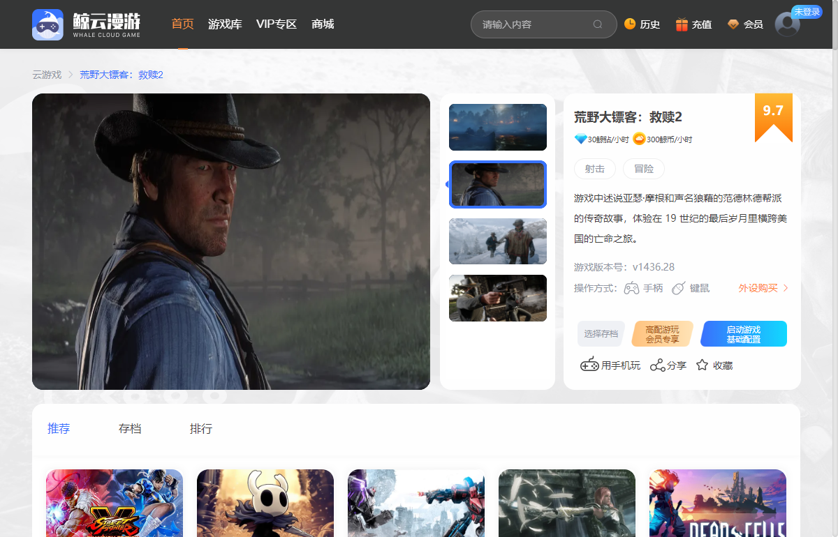 鲸云漫游是一款优秀的云游戏软件,拥有强大的游戏性能,可以畅玩各种大型电脑游戏。《艾尔登法环》、《幻兽帕鲁》、《荒野大镖客2》、《看门狗2》等一众热门3A游戏都能玩。无需注册游戏账号,点开即玩,并且还能自动保存游戏数据,退出游戏进度不清除,非常方便连续游玩。