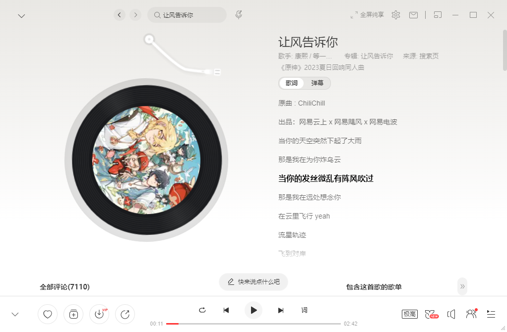 精彩乐评:歌曲评论区十分热闹,有真实情感故事、音乐科普、文学金句、流行玩梗等各种内容,用户也可写下自己的灵感评论。