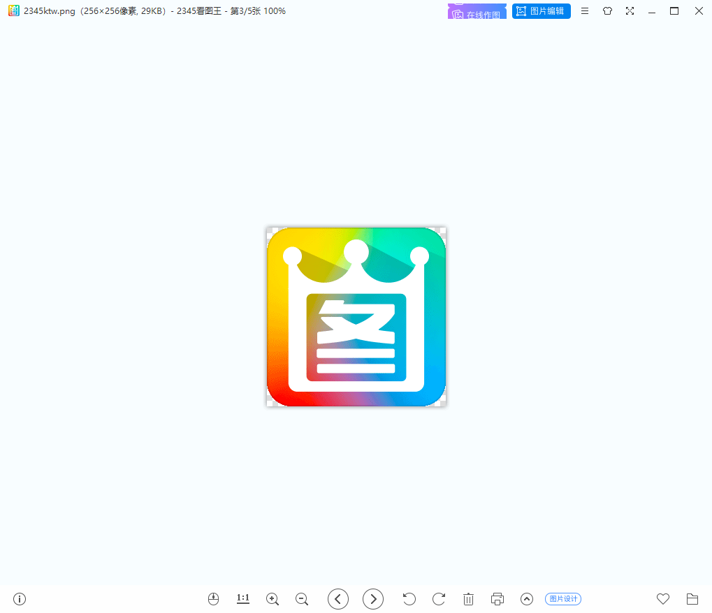 1.界面的左上角是看图王的LOGO和当前显示的图片信息:图片名称+格式+尺寸--2345看图王--当前图片是整个文件夹中的第几张图片--缩放比;