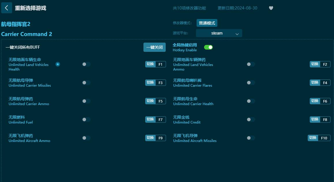 航母指挥官2十项修改器普通模式 (支持 10 项修改,不支持联网模式)