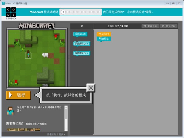 这个基于游戏我的世界的编程教程是从code.org开始,得到比尔盖茨、扎克伯格、奥巴马等达人政府推荐的全球活动HourofCode(编程1小时)的一部分。