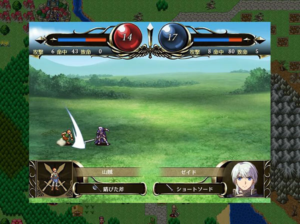 游戏的开始界面效果很好,剪影配上游戏地图的设计有种复古与怀旧的味道,不过作为一个老火纹玩家,感概或许仅仅止步于此,一旦在进入游戏,你会发现地图和战斗画面还是那种复古风,但是却显得有些不和谐了,其实主要原因在,除了几款游戏音乐和几个重要人物的立绘,于本作可以说基本上是加贺昭三独立完成,只能用SRPG Studio来完成游戏制作,或许已经被时代所抛弃。